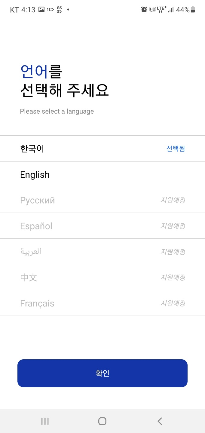 첫화면인데 외국인도 쓰기 때문에 언어를 먼저 선택해야하는것 같아요