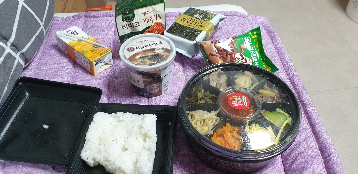 -밥은 도시락밥이 계속 나오고 과자랑 사과등 간식도 나오고,