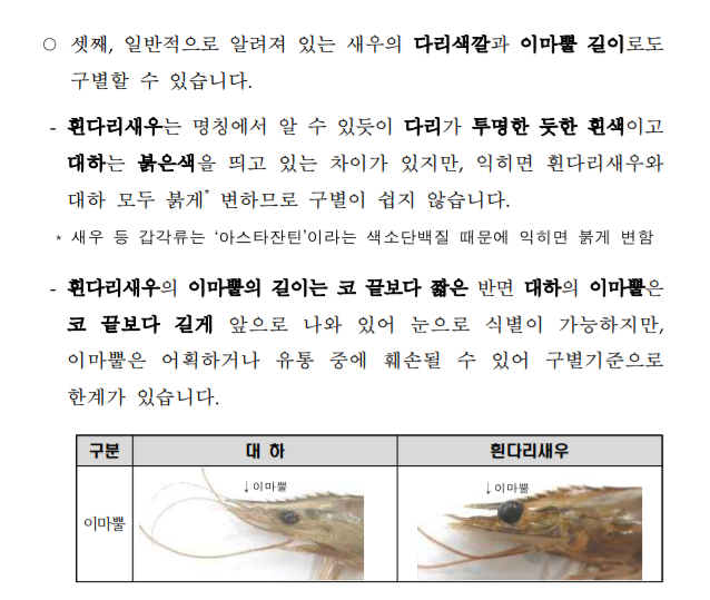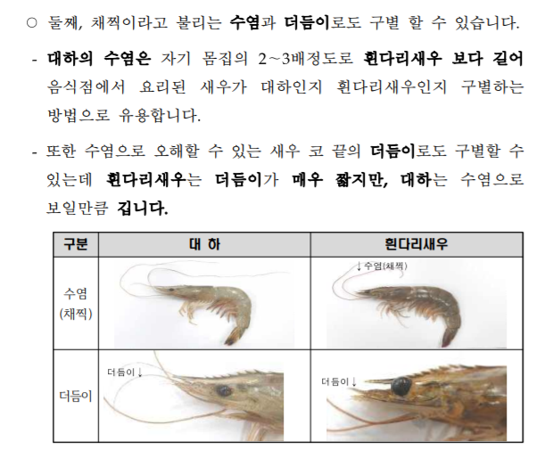 대하와 흰다리새우 구별 방법입니다.
