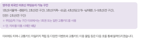 동일노선 환승시에는 환승할인의 혜택을 받을 수 없음.